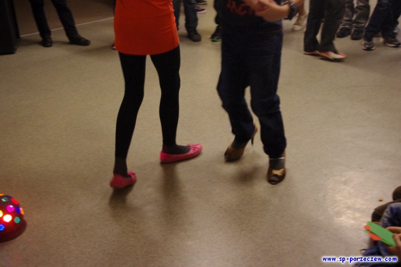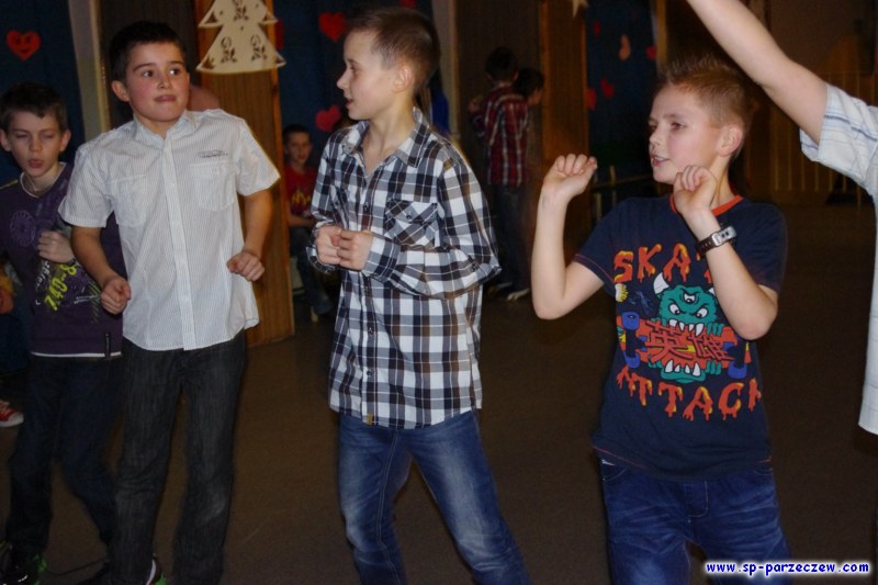 W czasie trwania dyskoteki zostały rozdane kartki walentynkowe. Dla zwycięzców konkursu na zebranie ich największej ilości, wymyślono dziwaczny taniec , w którym dziewczyna wystąpiła w masce gazowej , a chłopak w butach na wysokich obcasach. Wzbudziło to u wszystkich zebranych gromki śmiech. Zwycięzcy konkursu to: Julia Saganiak- kl. V oraz Kacper Augustyniak - kl. IVb. Panowała radosna atmosfera, bo zabawa się bardzo udała. Wszystkim uczestnikom DZIĘKUJEMY za udział w naszej dyskotece!